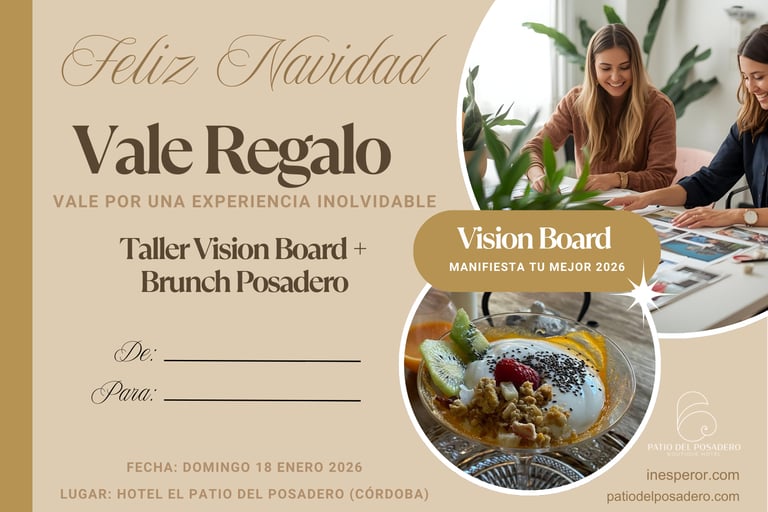 Para empezar muy bien el año he creado junto con el Hotel El Patio del Posadero una experiencia inolvidable: el Taller Vision Board: Manifiesta tu mejor 2026 + Brunch Posadero que puedes regalar o auto-regalarte por el precio especial de 69€.